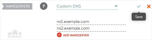 5. Enter your nameservers in the text fields and click on the Save icon.