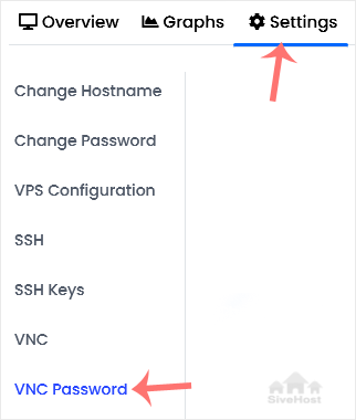 4. Click on Settings and then on VNC Password.